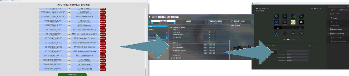 Links finden sich die MSFS Funktionen, rechts die Funktionen des Hubschraubers.